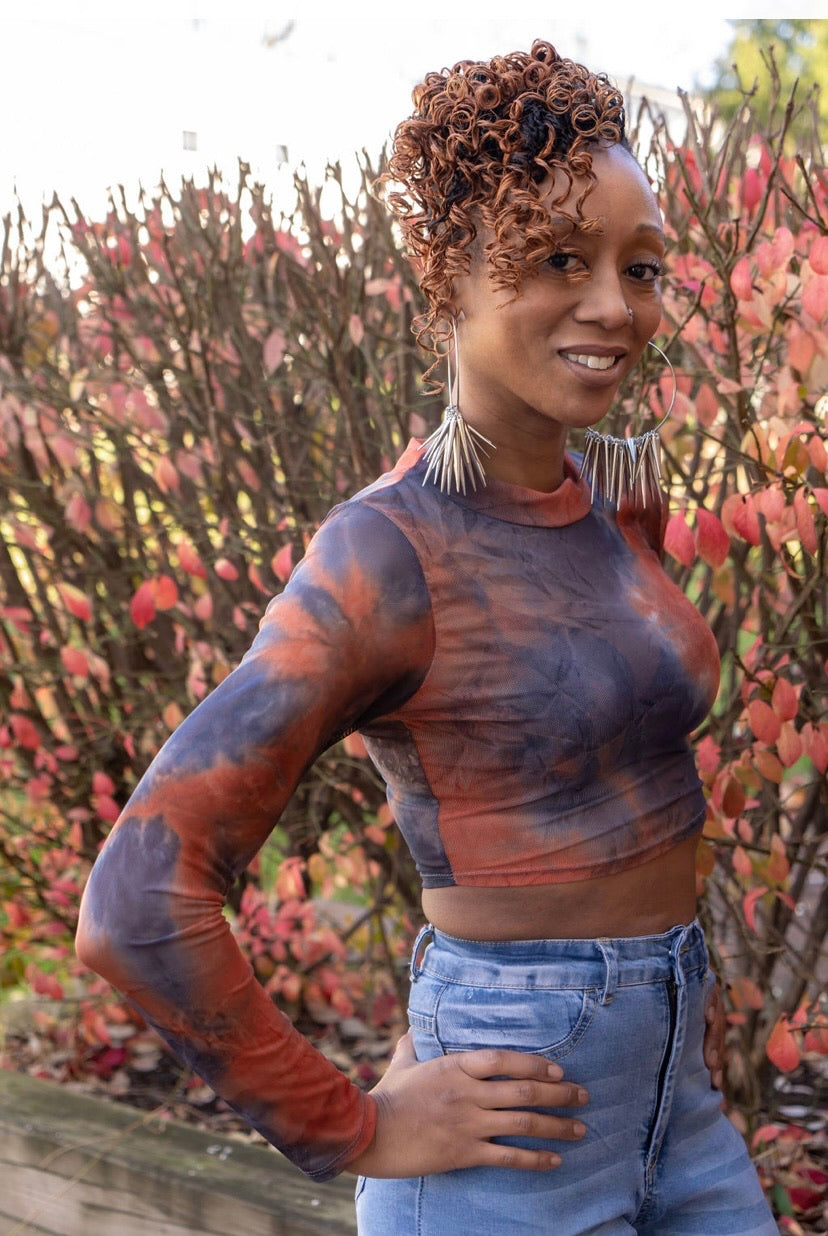 - Navy/rust tie dye crop top